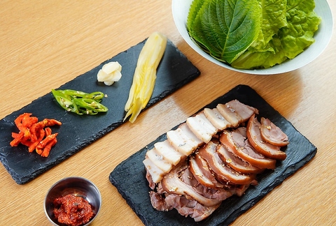 【ポッサム・チョッパル】は、じっくりと時間をかけて仕上げた自家製仕込みです。旨味を凝縮されたやわらかい豚肉を香味野菜や特製ダレとともに本場の味をお楽しみいただける、満足感たっぷりの一品です。 お酒との相性抜群のメニューも豊富に取り揃えており、上質な韓国料理をカジュアルにお楽しみいただけます。