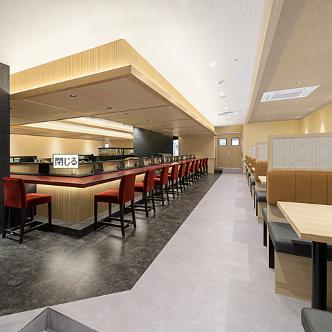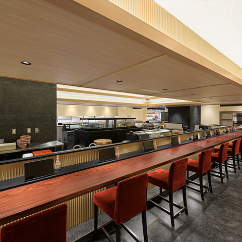 熟練の職人が目の前で一貫ずつ丁寧に握る様子を楽しめる、開放感あふれるカウンター席をご用意しました。ゆとりある空間設計により、隣を気にせずお食事に集中できるのが魅力です。本格寿司の醍醐味である活気と繊細な技を五感で味わいながら、贅沢なひとときをお過ごしください。落ち着いた大人の社交場を演出します。