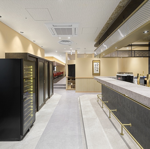 職人の繊細な手仕事を特等席で堪能できる、全31席の広々としたカウンター席です。お一人様での贅沢なランチや、大切な方との語らいに最適な空間となっております。