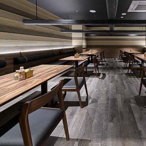 4名様用が4卓、2名様用が3卓と、少人数から中規模の集まりまで柔軟に対応可能なテーブル席です。明るく清潔感のある空間は、女子会やカジュアルな会食にも最適。
