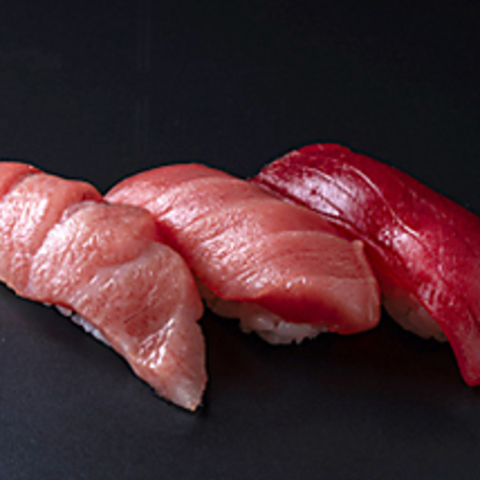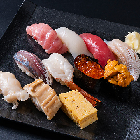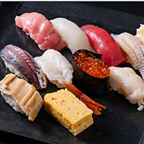 職人が目利きした海の幸を贅沢に盛り合わせた一品です。口の中でとろけるような脂のりと、赤身本来の深い旨味を存分にご堪能いただけます。素材の良さを引き出す丁寧な手仕事が光る握りは、お食事の主役にも最適。本格的な味わいをぜひこの機会にお楽しみください。日替わりの鮮魚とともに彩りを添えます。