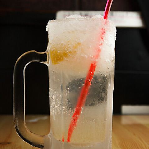 凍らせた焼酎がポイントの「シャリ生レモン」。最後の一滴までレモンの爽快感を楽しめるのがポイント!